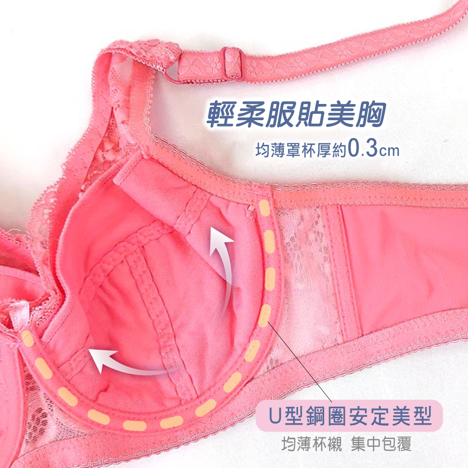 U型鋼圈 × 三片式剪裁罩杯,收攏胸型自然集中